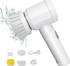 Wireless, Chargeble surface cleaning scrubber with a rotating brush head saves effort and time. Cleans dishes, and surfaces. A handbrush alternative.